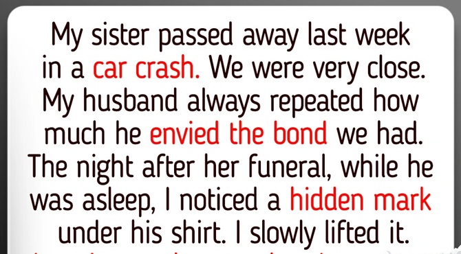 My sister passed away last week in a car crash. We were very close. My husband always repeated how much he envied the bond we shared. The night after her funeral, while he was asleep, I noticed a hidden mark under his shirt. I slowly lifted it. Imagine my horror when I saw a portrait of my sister tattooed across his back.