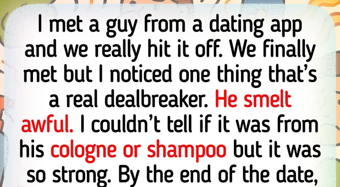 I met a guy from a dating app, and we really hit it off. We finally met, but I noticed one thing that’s a real dealbreaker. He smelt awful. I couldn’t tell if it was from his cologne or shampoo, but it was so strong.