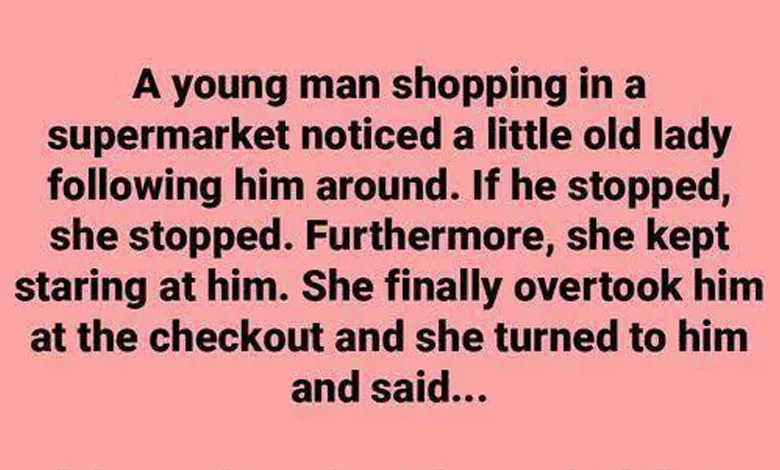 A young man noticed an elderly lady following him around while shopping in a supermarket. She stopped when he stopped and kept staring at him. Eventually, at the checkout, she approached him and said, “I hope I haven’t made you feel ill at ease; it’s just that you look so much like my late son.”…