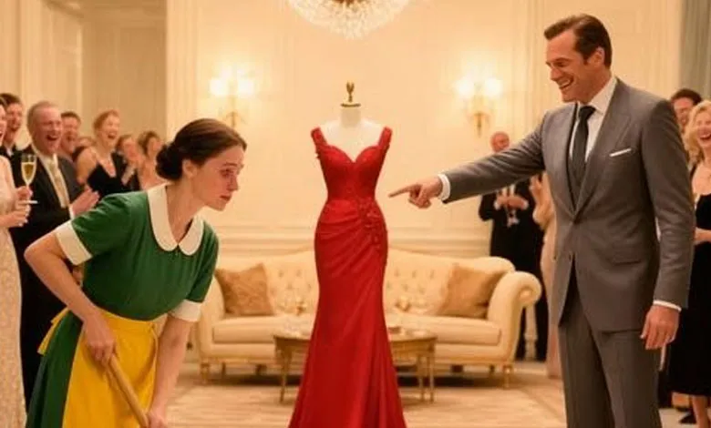 Amid laughter and raised glasses, a striking woman appeared at the grand entrance. The crowd glanced her way, and everything paused. Clara stood there wearing the same red dress that had once been a symbol of her embarrassment but now radiated power. Her hair was neatly gathered, her posture graceful, her expression calm- no trace of the timid maid remained.