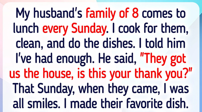 But ever since we moved, my husband’s family of 8 comes to lunch every Sunday. They say that the house is big and could fit us all. I cook for them, clean and do the dishes. Not once has anyone stepped into the kitchen to help.