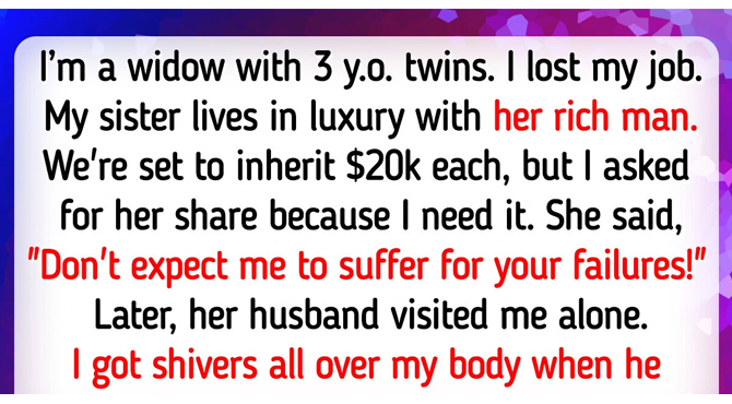 I’m a widow with 3 y.o. twins. I lost my job. My sister lives in luxury with her rich man. We’re set to inherit $20k each, but I asked for her share because I need it. She said, “Don’t expect me to suffer for your failures!”