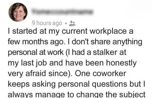 After a frightening experience with a stalker at her previous job, she preferred to stay quiet and focus solely on her work