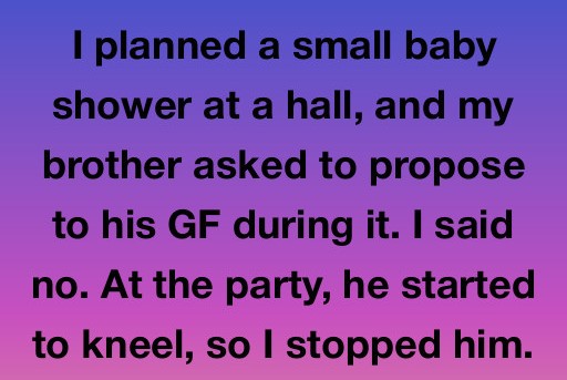 I planned a small baby shower at a hall, and my brother asked to propose to his girlfriend during it. I said no. At the party, he started to kneel, so I stopped him. The room went silent, and he stormed out. The next day, I was floored when my mom said that she had agreed to it.
