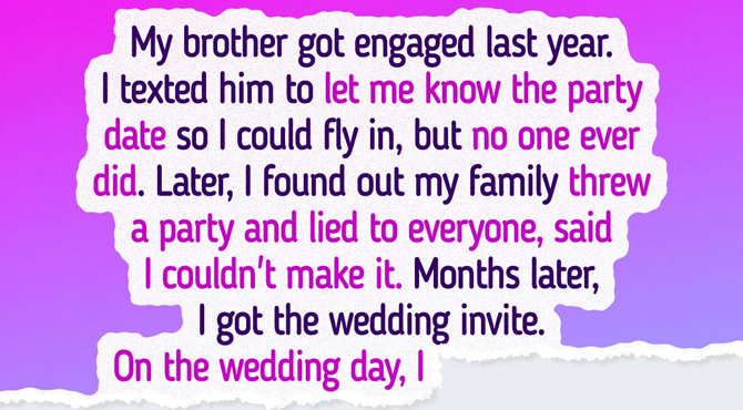 Family celebrations are meant to unite everyone, but sometimes they expose hidden rifts. When one man was deliberately excluded from his own brother’s engagement, he didn’t just sit back and accept the slight. Instead, he came up with a bold plan for revenge, and it turned the whole event upside down.