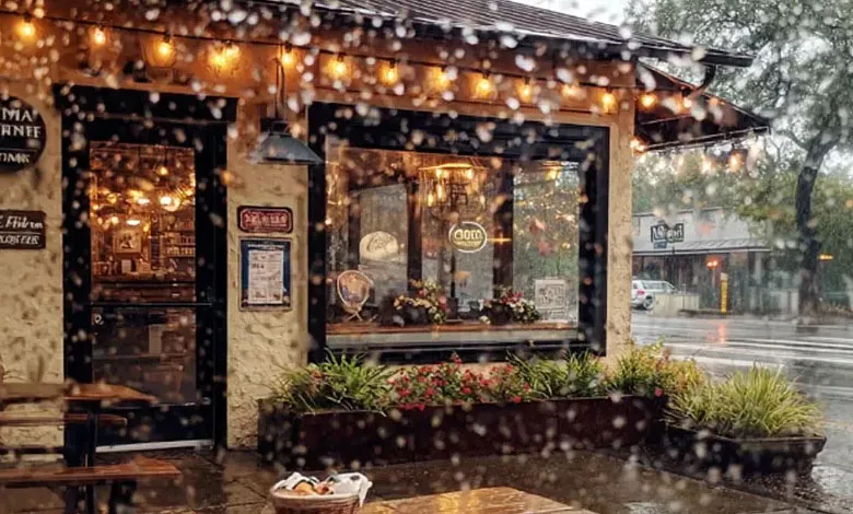 I spotted a small café across the street and made a dash for it, covering Amy’s stroller with my jacket.