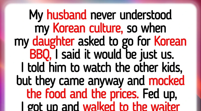 My husband, Mark, doesn’t really get it. He’s not cruel, but he makes jokes that sting. He calls my kimchi ’science experiments,’ complains that the house ’smells like vinegar,’ and once said something like, ’You act like you’re from Korea, but you’re not.’ We’ve been married for 12 years, and I usually just let it slide. But last weekend something broke.Our daughter, Ellie, who’s 14, is the only one of our three kids who seems genuinely interested in my culture. She watches K-dramas with me, loves trying new food, and always asks about my parents. So when she suggested going to a Korean BBQ restaurant, I was over the moon.”