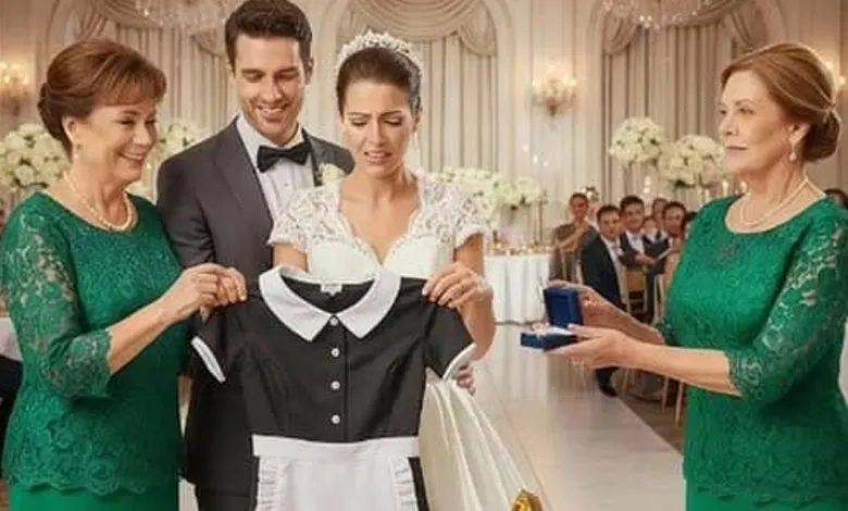Sofía opened the box and found a cleaning uniform, complete with a white apron and her name embroidered on it. Murmurs filled the room, and the young woman froze, tears welling in her eyes. Alejandro smiled, took the uniform, and remarked, “Exactly what you’ll need at home.” The silence became unbearable, and the brightness of the ballroom seemed to dim.