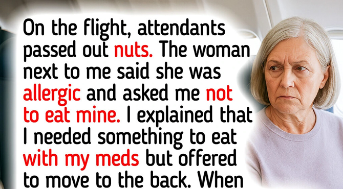 10 minutes later, I froze as I saw her press the call button and tell the attendant, “That’s her. She knew I had a nut allergy and ate them anyway.” I was stunned. “What?” I said. She repeated it — louder this time, “She knowingly endangered me.”