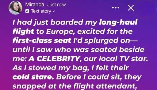 I had just boarded my long-haul flight to Europe, excited for the first-class seat I’d splurged on—until I saw who was seated beside me: a celebrity, our local TV star. As I stowed my bag in the overhead bin, I felt their cold stare burning through me. Before I could even sit down, they snapped at the flight attendant, “CAN YOU MOVE HER? I NEED MORE SPACE.”