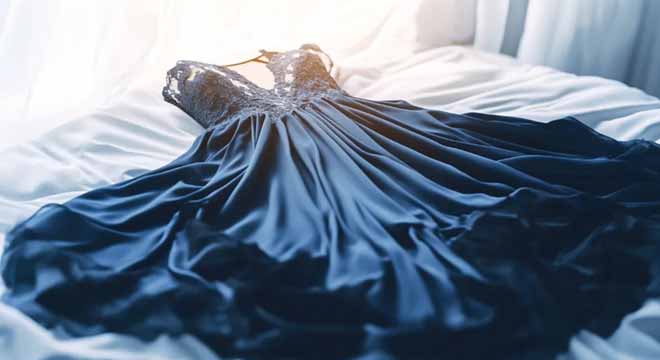 Then I saw it: a midnight blue, floor-length dress with delicate lacework across the back.