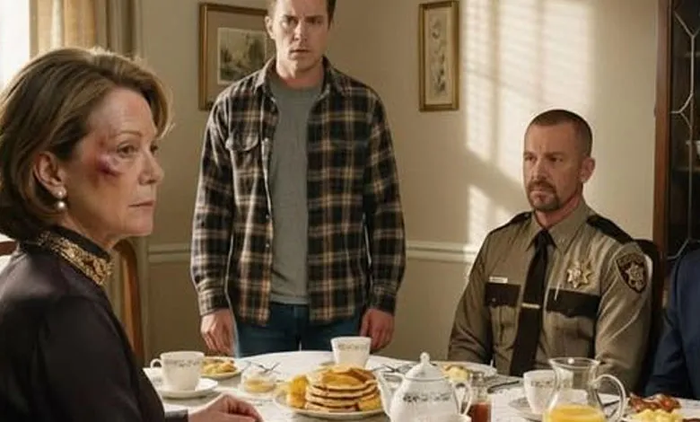 My son s:truck me last night, and I said nothing. This morning, I spread out my lace tablecloth, cooked a full Southern breakfast, and brought out the fine china as if it were a holiday. When he came downstairs, he took one look at the biscuits and grits, smirked, and said, “Looks like you finally learned.” But the smile vanished the moment he noticed who was seated at the table.