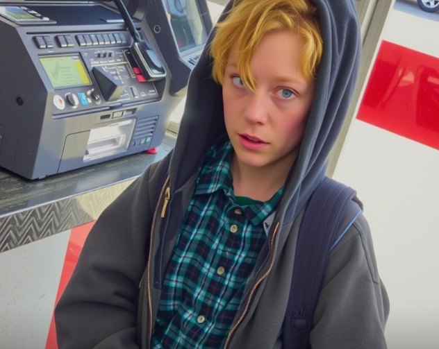 The cashier, a middle-aged woman with purple reading glasses hanging from a chain around her neck, didn’t even look up from her phone. She shook her head before he’d finished his sentence.”No credit, kid. Store policy.”