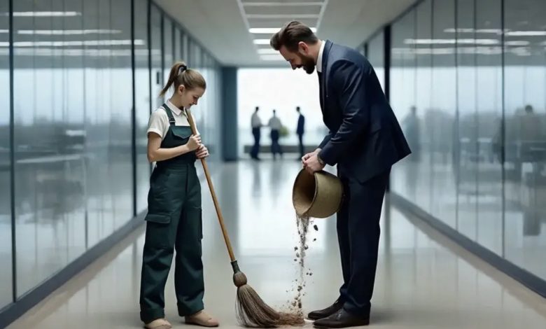 She was aware that the real world inside the company was far different from the one she had been shown as the daughter of the CEO. Her heart raced with a mix of excitement and nervousness as she began to scrub the mirrors and mop the floors. It was there, in the quiet hum of cleaning supplies and fluorescent lights, that Sophia first observed the unspoken rules of the office.