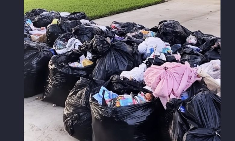 Our belongings—clothes, toys, photo albums—were piled on the curb in black trash bags.