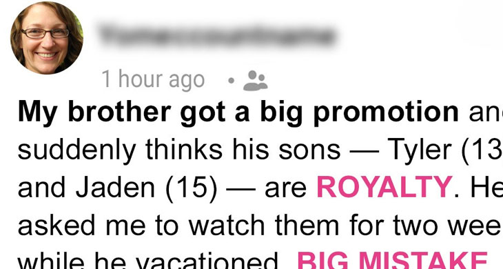 When my brother asked me to watch his sons while he and his wife vacationed in the Maldives, I hesitated—but agreed. Two weeks with Tyler and Jaden couldn’t be that bad, right? Wrong. From the moment they arrived, the boys acted like they were royalty forced to slum it in the suburbs. They mocked my cooking, scoffed at our home, and humiliated my sweet son Adrian at every turn.