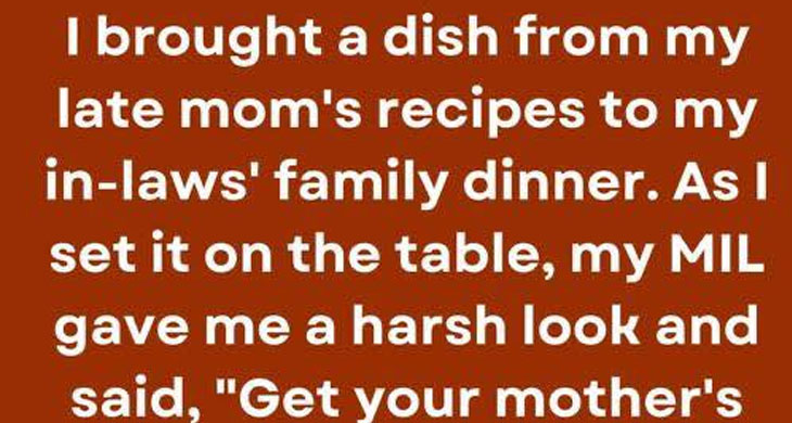I’m a 25-year-old newlywed, married to my loving husband, who is 28. Last weekend, I brought a dish from my late mom’s recipes to my in-laws’ family dinner. As I set it on the table, my MIL gave me a harsh look and said, “Get your mother’s food out of my house!” In tears, I left and waited for my husband in the car for an hour. The ride home was silent until he suddenly burst out laughing and said, “Did you hear the joke my cousin made during dinner? He’s hilarious-he should be a comedian.” This was only the second gathering I’d attended with his family and the third time I’d met my mother-in-law. My own mother sadly passed away a year before our marriage and my MIL never had the chance to meet her. I don’t understand where this hostility is coming from. Now, I feel not only humiliated but also deeply hurt that my mom’s memory was disrespected. What makes it even harder is that my husband remains indifferent, offering neither an apology nor any acknowledgment of my feelings. I’m struggling to move past this, especially without his support or any apology on behalf of his mother
