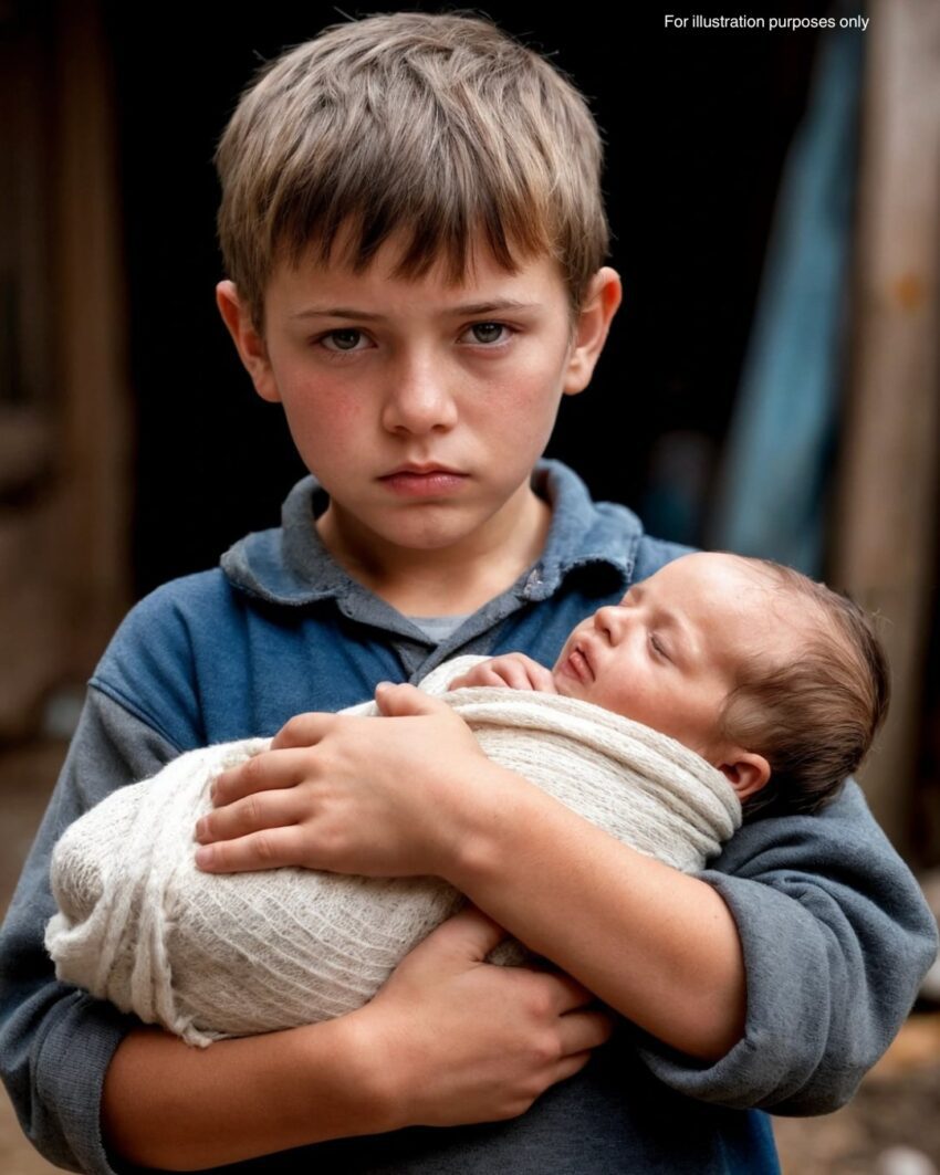 In front of him stood a child about seven years old. Thin, disheveled, with tearful eyes. In his arms he held a tiny bundle, from which peeked the face of a little baby. The girl, wrapped in an old, worn-out blanket, weakly whimpered, and the boy held her as if he were her only protection in this indifferent world.