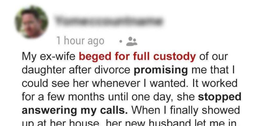 My ex-wife begged for full custody of our daughter after the divorce, promising me that I could see her whenever I wanted.