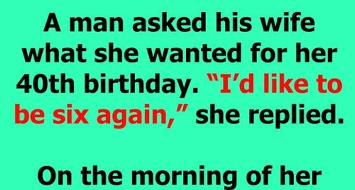 A man asked his wife what she wanted for her 40th birthday. “I’d like to be six again,”