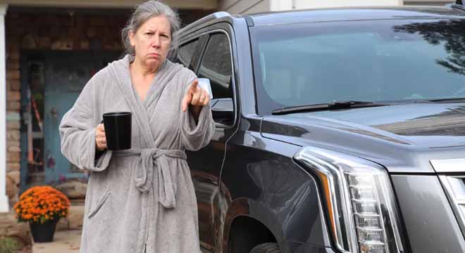 Just as I opened the driver’s door, Susan rushed out onto the porch with her ever-present mug of coffee.