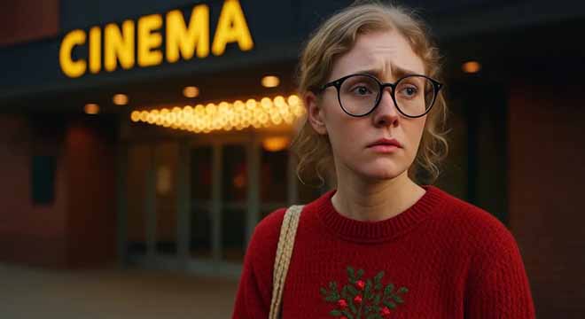 I stood outside the cinema, dressed as nicely as I could manage—Grandma’s Christmas sweater hugging me tightly, itchy wool scratching softly against my skin.