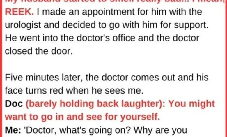 Deleted user: My husband started to smell really bad… I mean, REEK. I made an appointment for him with the urologist and decided to go with him for support. He went into the doctor’s office and the doctor closed the door.