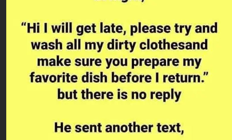 Late one night, a husband sent a text to his wife, requesting her to wash his dirty clothes and prepare his favorite dish before he returned home. Surprisingly, there was no reply.