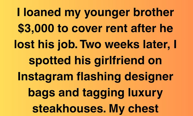 I loaned my younger brother $3,000 to cover rent after he lost his job. Two weeks later, I spotted his girlfriend on Instagram flashing designer bags and tagging luxury steakhouses. My chest tightened. I confronted him, and he laughed, saying, “You’re family, not a bank.” The next day I walked into my apartment and found my TV missing.