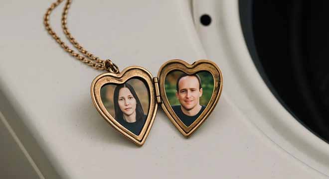 The heart-shaped locket swung gently from the chain, scratched and worn at the edges like it had been touched often, maybe even kissed.