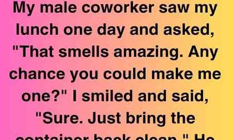 A male coworker commented, “That smells amazing,” after seeing my lunch. Could you make me one? I grinned and answered, “Yes. Just return the container clean.” He did. I was horrified when I opened it. The note read: “Get away from him before it’s too late.”