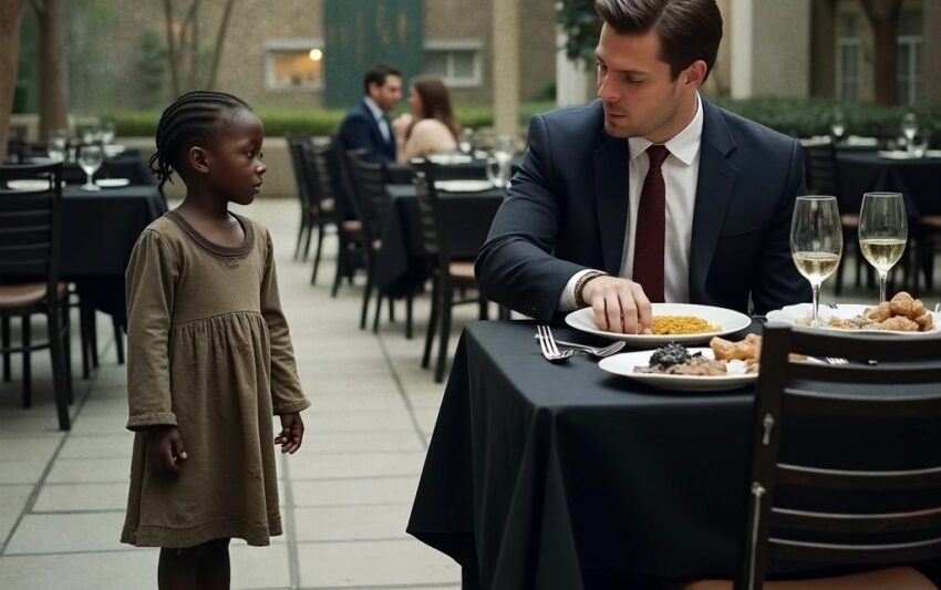 A man in a tailored navy suit, about to enjoy the first bite of a dry-aged ribeye, froze. Slowly, he turned toward the source: a small girl, messy hair, dirty sneakers, and eyes that carried both hope and hunger. No one in the room could’ve predicted that such a simple question would transform both of their lives forever.