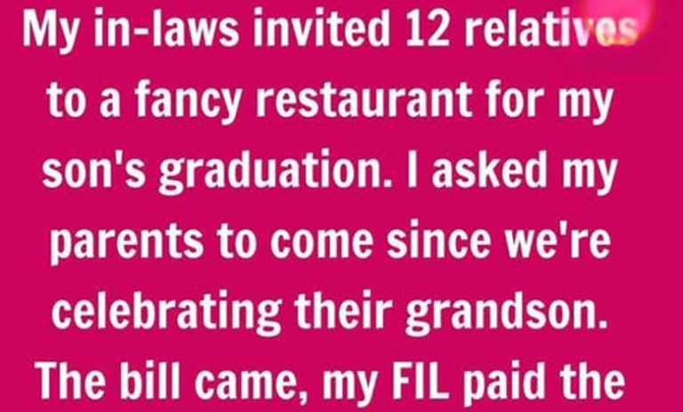 Mark’s son’s graduation should have been a night of joy. His in-laws hosted a lavish dinner at a fine restaurant, inviting twelve family members to celebrate. Wanting his own parents to share in the moment, Mark asked them to join as well. But instead of feeling welcome, they were treated as outsiders. When the $1,700 bill came, his father-in-law demanded that Mark cover the 18% tip “since he brought guests.” Hurt and offended, Mark refused—and tensions exploded.
