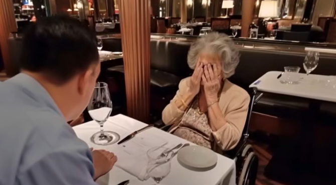 The man’s eyes narrowed. “I heard your outburst. And I need to say something.” Emily recognized him as the restaurant’s owner, Mr. Harris. The staff nearby had fallen silent. Everyone was watching.“That woman sitting across from you is your mother,” Mr. Harris said. “And I’ve never heard anyone speak to their mother like that. It disgusts me. Do you know what I would give to have dinner with my mother again? She passed away years ago. She was disabled too.