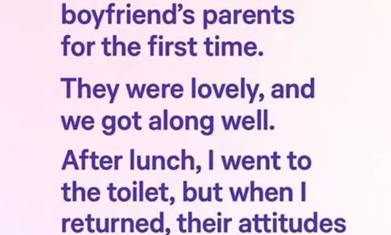 When I slipped away to the restroom and came back, the lighthearted mood had vanished. The space felt heavy, my boyfriend’s dad avoided my gaze, and his mom’s grin looked strained. Before I could even speak, my boyfriend hurried us out, providing only the briefest goodbye.