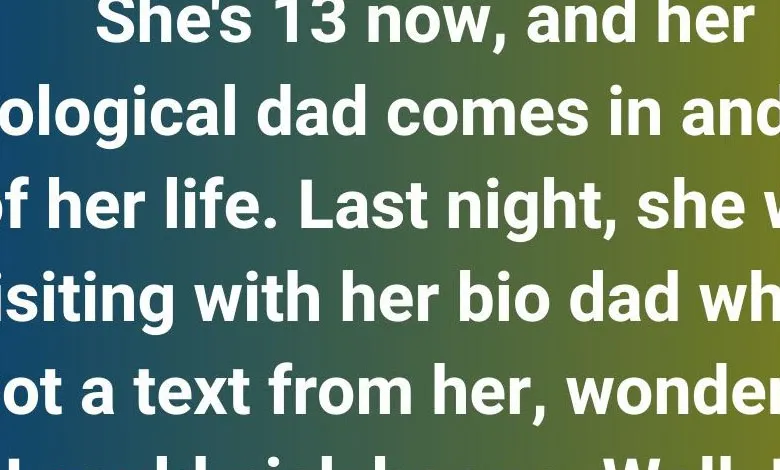 She’s thirteen now, navigating the ups and downs of adolescence. Her biological father drifts in and out of her life. She doesn’t always say it out loud, but she knows how uncertain that presence is.