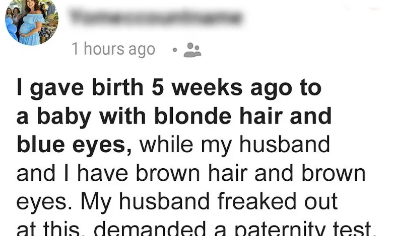 I gave birth 5 weeks ago to a baby with blonde hair and blue eyes, while my husband and I both have brown hair and brown eyes. My husband freaked out at this, demanded a paternity test, and went to stay with his parents for weeks. My mother-in-law told me that if the test showed that the baby wasn’t her son’s, she would make sure I was “taken to the cleaners” during the divorce. Yesterday, we received the results. My husband, wide-eyed and shocked, stared at them as the truth sunk in.