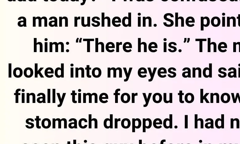 Then, a man rushed in. She pointed at him: “There he is.” The man looked into my eyes and said, “It’s finally time for you to know!” My stomach dropped. I had never seen this guy before in my life.