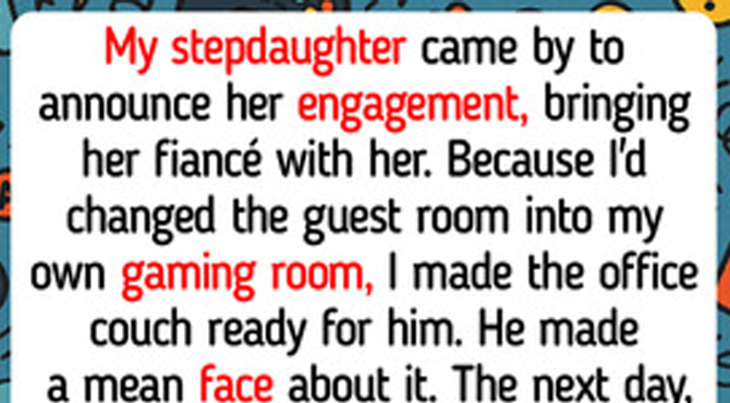 My stepdaughter, fresh from her flashy engagement, visited with her arrogant fiancé.