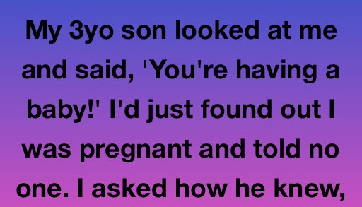 My 3-year-old son looked at me and said, “You’re having a baby!” I’d just found out I was pregnant and told no one. I asked how he knew, he shrugged and said, “Just a feeling.” Less than a week later, I miscarried, and later that day, he looked at me and said softly, “The baby went back to the sky.”