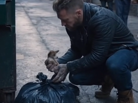 The puppy, tucked into the man’s leather jacket, nudged his chin with its wet nose.
