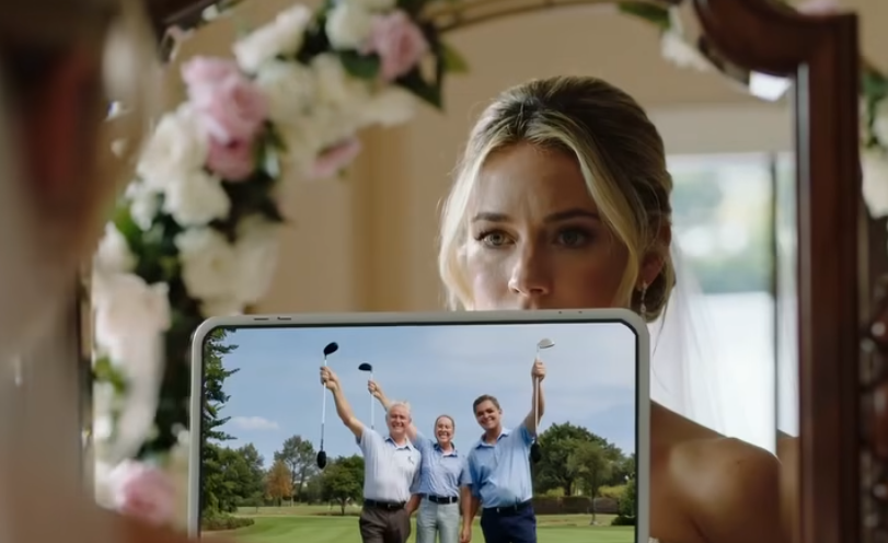 Matching polos. A manicured green. Wide, oblivious smiles.