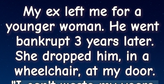 When I opened it, I barely recognized the man in the wheelchair. His face was thinner, his shoulders hunched, his once-confident posture replaced by frailty. Behind him stood a woman I recognized instantly—the young wife he had left me for. She didn’t even try to soften her voice.