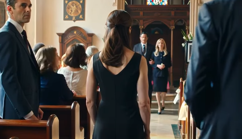 The photos that landed on her desk were of the same woman now adjusting her dress in the front pew.
