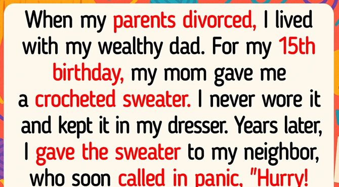 Years later, while cleaning out my things, I decided to give the sweater to my neighbor. Not long after, she called me in a panic and said, “Hurry! You have to check the sweater pocket!” Inside, I found an envelope with a letter from my mom and a small savings book in my name. Page after page showed deposits she had made since I was a child. At the bank, I learned she had continued saving all these years. I broke down. Even with so little, she had done everything she could for me, quietly preparing for my future, stitch by stitch, year after year.
