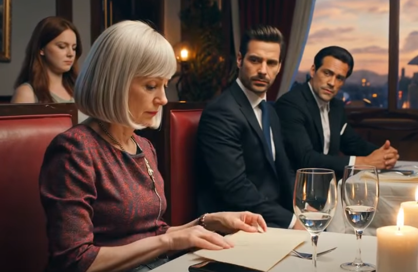 The silence at the table was heavy, broken only by the clinking of cutlery from other diners.