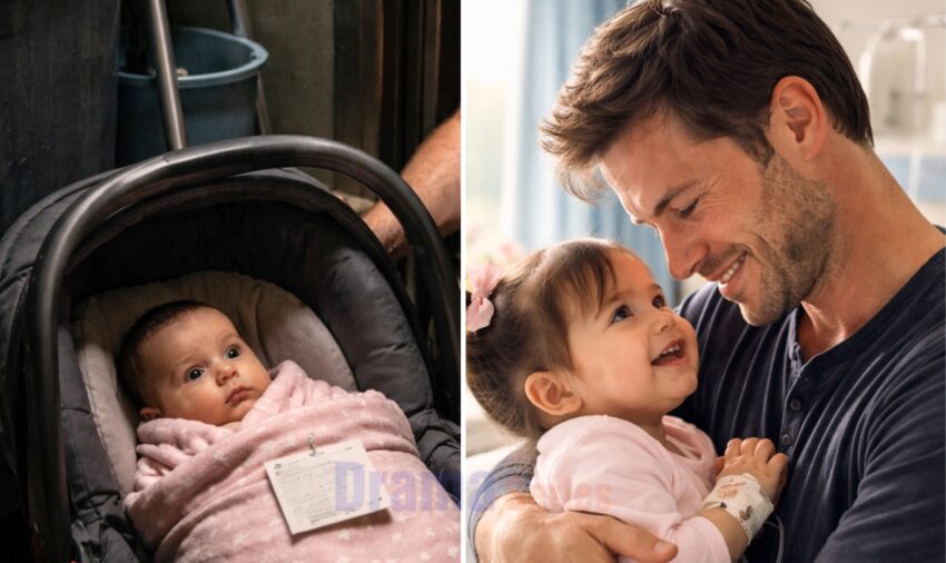 The bottom was soaked from the rain, and the straps were still damp. Inside, swaddled in a pink blanket dotted with tiny white stars, lay a baby girl. She couldn’t have been more than eight weeks old.