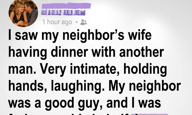 A single glance across a restaurant made me feel certain I understood someone else’s life. The evening had been ordinary—soft music, warm lighting, the quiet clatter of dishes—until I noticed Sarah, my neighbor’s wife, sitting in a corner booth with another man. They leaned close, laughing effortlessly, their faces relaxed in a way that spoke of comfort and trust. In that instant, my mind constructed an entire story from seconds of observation.