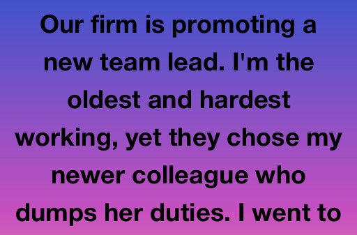 Our firm is promoting a new team lead. I’m the oldest and hardest working, yet they chose my newer colleague who dumps her duties on everyone else. I’ve spent fifteen years at this London marketing agency, often being the one to turn the lights off at night and the first to brew the coffee in the morning. I know every client’s preference, every quirk in our filing system, and every password for the archives. When the Team Lead position opened up, I didn’t just hope for it; I felt like I had earned it through sheer endurance and results.