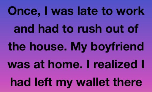 Once, I was late to work and had to rush out of the house. My boyfriend was at home. I realized I had left my wallet there and quickly came back. I opened the door to our bedroom and saw that my boyfriend was shirtless, standing far too close to his phone, looking nervous.